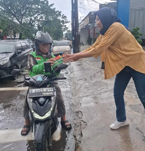 Kegiatan yang berlangsung di depan kantor BRI BO Lebak Bulus pada Jumat (6/3/2026) sore ini menyasar para pengemudi ojek online (ojol) serta masyarakat sekitar yang sedang melintas.